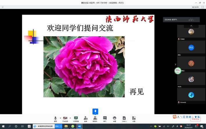 讲座结束,李君轶副院长代表学院师生,对延老师精彩的讲座表示感谢,紧接着进入提问环节,同学们踊跃提问,延老师一一详答。这是特殊时期的一场特殊讲座,虽然不能与同学们面对面交流,延老师从雁塔校区赶往长安校区,精心准备,给同学们带来知识量丰富的一场讲座,与同学们分享野外经历,更是教给同学们一直坚持的地理研究方法——用脚说话。让我们互相约定,停课不停学,期待疫情过后与延老师进行更加深入的交流。