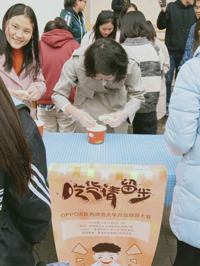 2018年11月17日,德赢vwin登录旅游学社在喷泉广场与绿之洲联合举办了“行也,食也”活动暨陕师大第一届掰馍大赛。这次比赛特别邀请了墨香斋贾家楼第五代传人白师傅作为评委,设置20个参赛名额。